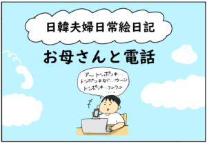 本日は日常の小ネタです。 別室でそれぞれ何かしている時などにかけている。 ↓ヨン氏とオモニの電話については過去の記事でも触れています。 親との連絡頻度はどのくらい? ちゃんと勉強できていないけど韓国ド … 続きを読む お母さんと電話